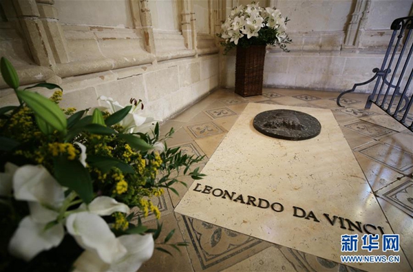2019年5月2日,法國總統(tǒng)馬克龍和意大利總統(tǒng)馬塔雷拉共同在法國昂布瓦茲城堡的圣·于貝爾禮拜堂,向達(dá)芬奇墓獻(xiàn)上鮮花。兩國總統(tǒng)的行程從昂布瓦茲城堡到克洛·呂斯城堡,再到香波堡,沿著達(dá)芬奇在法國生活過的足跡走了一圈,也拉開達(dá)芬奇逝世500周年紀(jì)念活動的序幕。