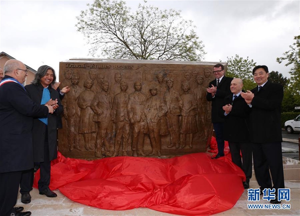 5月4日,為紀(jì)念留法勤工儉學(xué)運(yùn)動(dòng)100周年,大型雕塑《百年豐碑》在法國蒙達(dá)爾紀(jì)市鄧小平廣場(chǎng)落成。這座高2.9米、寬4.65米的雕塑,以浮雕形式,呈現(xiàn)十多位留法勤工儉學(xué)代表人物。