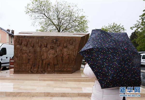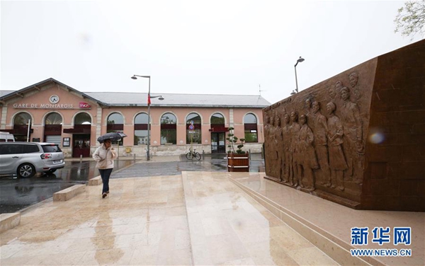 5月4日,在距法國巴黎100多公里的小城蒙塔日,《百年豐碑》大型雕塑被安放在火車站前的鄧小平廣場(chǎng)。新華社記者 高靜 攝
