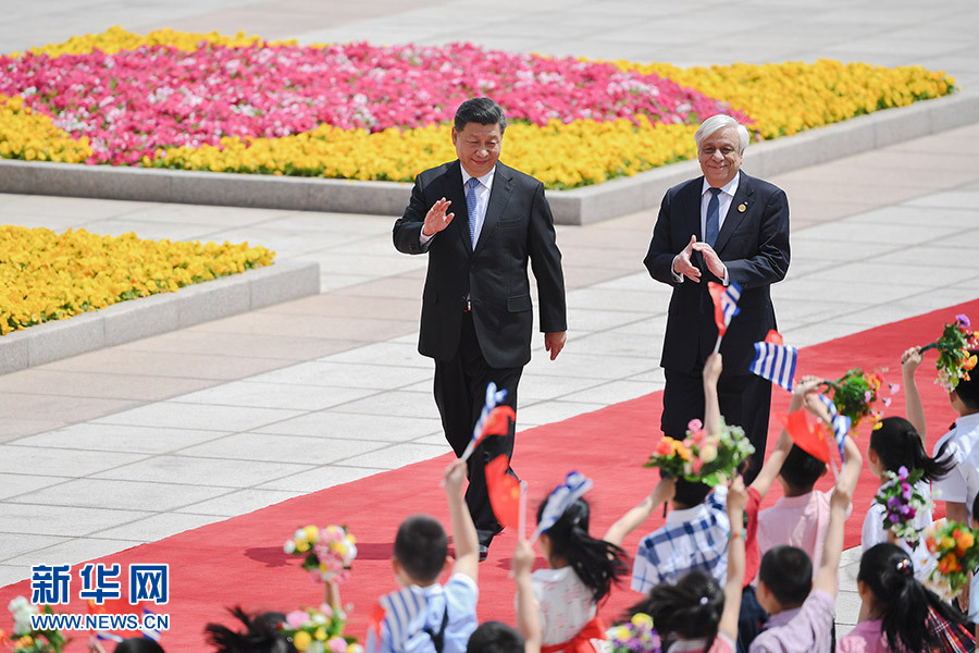 5月14日,國家主席習(xí)近平在北京人民大會堂同希臘總統(tǒng)帕夫洛普洛斯舉行會談。這是會談前,習(xí)近平在人民大會堂東門外廣場為帕夫洛普洛斯舉行歡迎儀式。 新華社記者 燕雁 攝