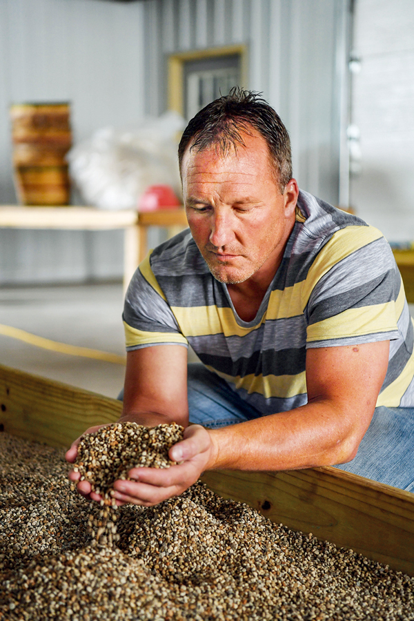 由于美國一些人挑起經(jīng)貿(mào)摩擦,美國農(nóng)產(chǎn)品遭到其他貿(mào)易伙伴反制,出口市場前景黯淡。圖為美國威斯康星州沃索市近郊的農(nóng)戶喬·海爾愁容滿面地捧起西洋參種子查看,希冀經(jīng)貿(mào)摩擦早日結束。 新華社記者 劉杰/攝