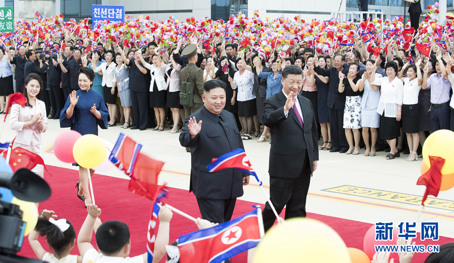6月21日,中共中央總書記、國家主席習近平結(jié)束對朝鮮的國事訪問離開平壤回國。離開前,習近平和夫人彭麗媛出席朝鮮勞動黨委員長、國務(wù)委員會委員長金正恩和夫人李雪主在機場舉行的歡送儀式。新華社記者 黃敬文 攝