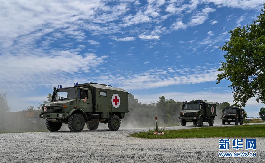 這是7月5日在德國(guó)費(fèi)爾德基興訓(xùn)練基地拍攝的中德“聯(lián)合救援-2019”衛(wèi)勤實(shí)兵聯(lián)合演習(xí)整合訓(xùn)練現(xiàn)場(chǎng)。新華社記者 連振 攝