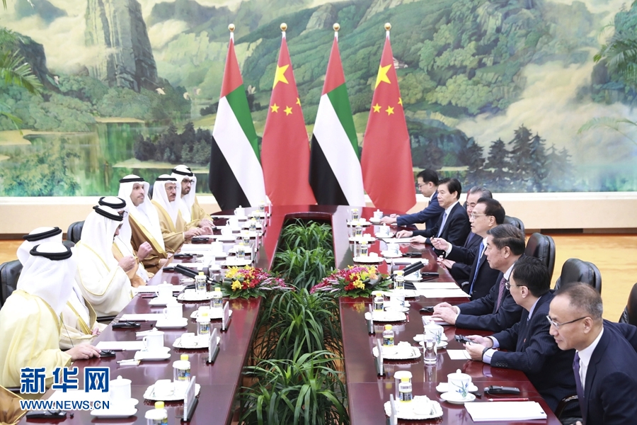 李克強表示,阿聯(lián)酋是中國在中東、海灣方向的重要合作伙伴。建交35年來,中阿關(guān)系與合作穩(wěn)步向前發(fā)展,雙方在涉及彼此核心利益和重大關(guān)切問題上相互尊重和支持。習(xí)近平主席去年成功訪問阿聯(lián)酋,兩國關(guān)系提升為全面戰(zhàn)略伙伴關(guān)系。中方愿同阿方繼續(xù)鞏固政治互信,加強發(fā)展戰(zhàn)略對接,深化全方位合作,更好造福兩國和兩國人民。