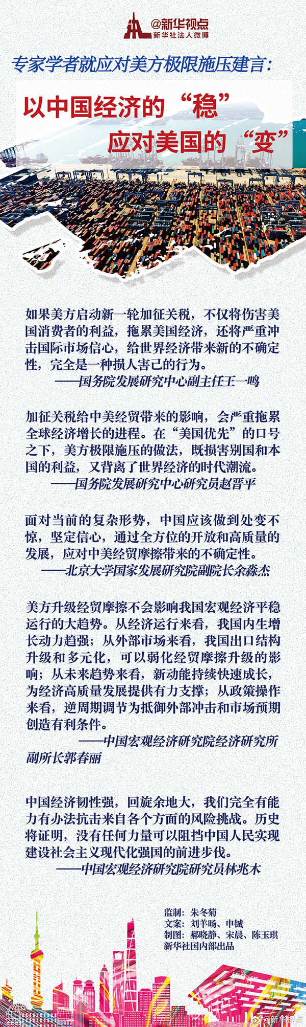 新華社北京8月7日電 題:以中國經(jīng)濟(jì)的“穩(wěn)”應(yīng)對美國的“變”——專家學(xué)者就應(yīng)對美方極限施壓建言