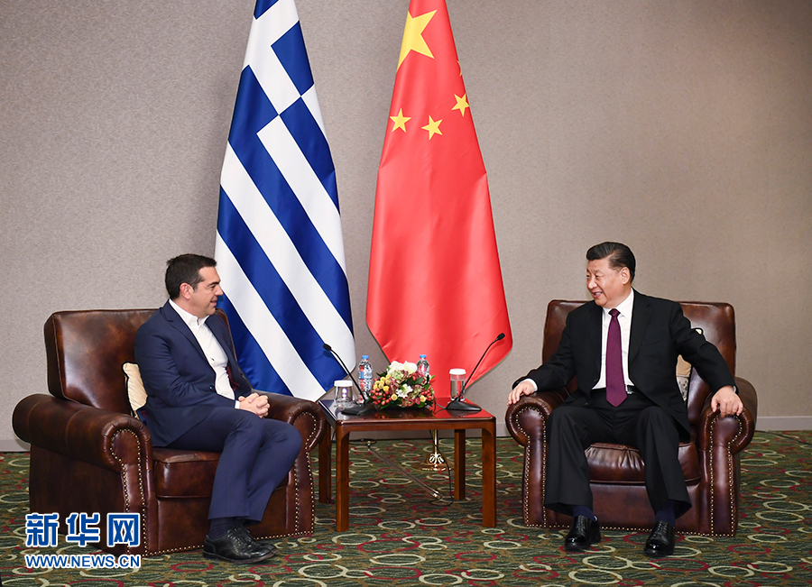 當?shù)貢r間11月12日,國家主席習近平在雅典會見希臘前總理齊普拉斯。 新華社記者 謝環(huán)馳 攝