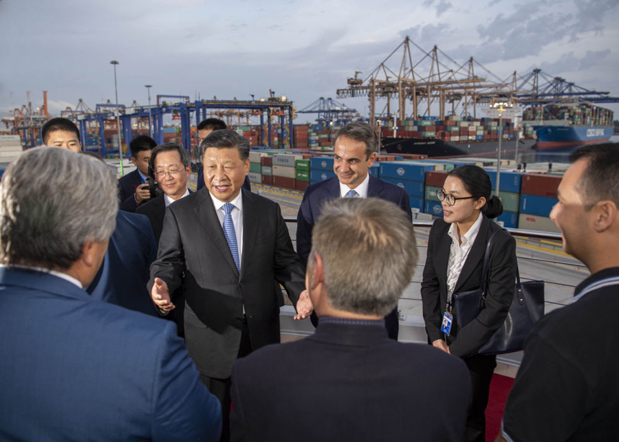 ——2019年11月4日,習(xí)近平主席在上海會(huì)見希臘總理米佐塔基斯時(shí)指出,中方愿同希方一道,保持高層交往勢(shì)頭,深化友誼和互信,推動(dòng)務(wù)實(shí)合作,特別是發(fā)揮好比雷埃夫斯港項(xiàng)目的引領(lǐng)和示范作用,共建“一帶一路”。