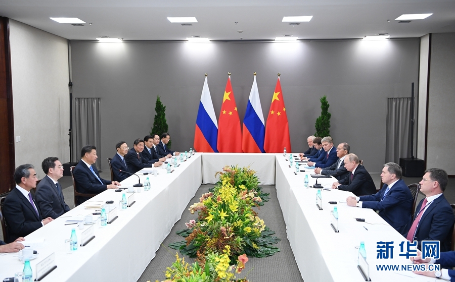 當(dāng)?shù)貢r間11月13日,國家主席習(xí)近平在巴西利亞會見俄羅斯總統(tǒng)普京。新華社記者 龐興雷 攝