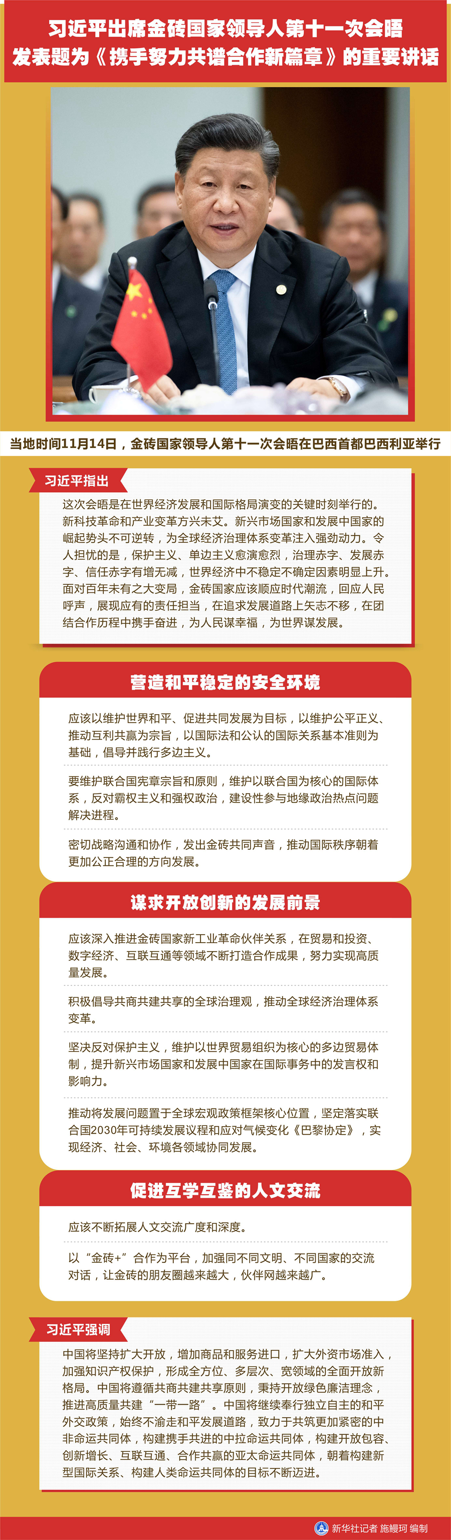 圖表:習(xí)近平出席金磚國家領(lǐng)導(dǎo)人第十一次會晤 發(fā)表題為《攜手努力共譜合作新篇章》的重要講話 新華社記者 施鰻珂 編制