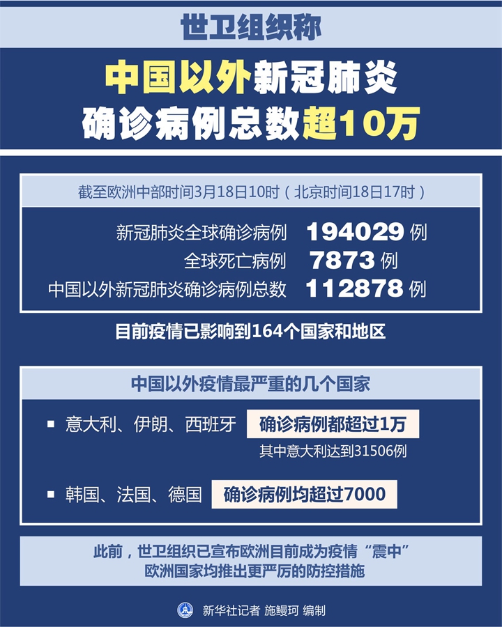 世衛(wèi)組織稱(chēng)中國(guó)以外新冠肺炎確診病例總數(shù)超10萬(wàn)-新華網(wǎng)