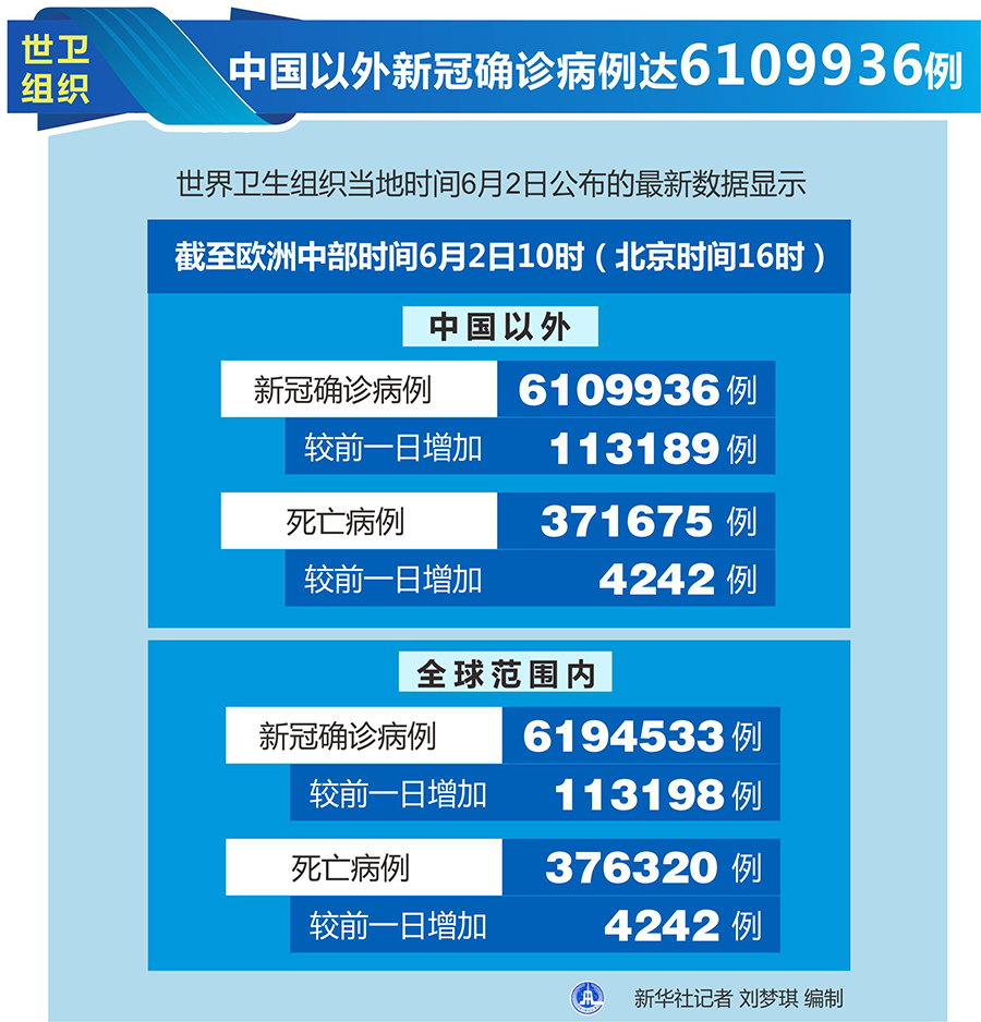 圖表:世衛(wèi)組織:中國以外新冠確診病例達(dá)6109936例 新華社記者 劉夢琪 編制