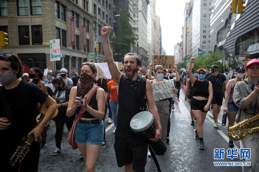 6月6日,人們?cè)诿绹?guó)紐約街頭抗議。 新華社發(fā)(郭克 攝)