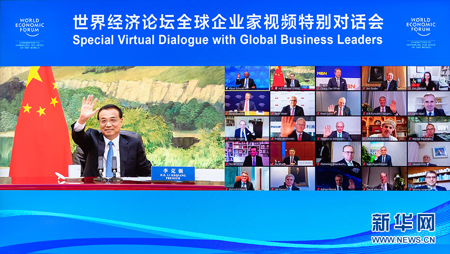 9月15日,國(guó)務(wù)院總理李克強(qiáng)在北京人民大會(huì)堂出席世界經(jīng)濟(jì)論壇全球企業(yè)家特別對(duì)話會(huì),發(fā)表致辭并同企業(yè)家代表互動(dòng)交流。對(duì)話會(huì)以視頻方式舉行。 新華社記者 翟健嵐 攝
