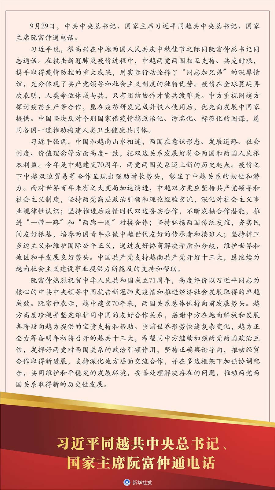 新華社北京9月29日電 9月29日,中共中央總書記、國(guó)家主席習(xí)近平同越共中央總書記、國(guó)家主席阮富仲通電話。