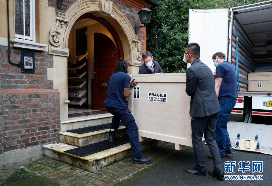 10月16日,在英國(guó)倫敦,工作人員協(xié)助中國(guó)駐英國(guó)大使館文化處清點(diǎn)文物。新華社記者 韓巖 攝