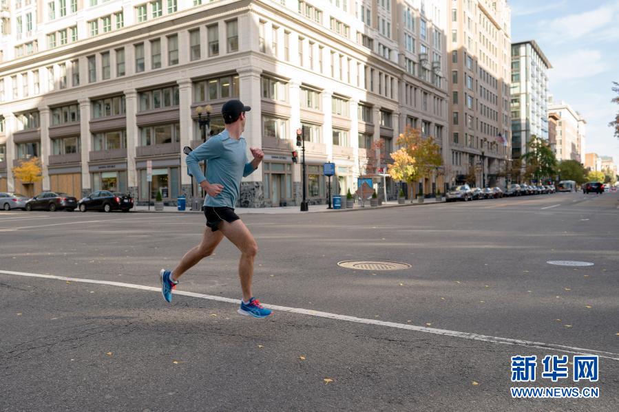 11月19日,在美國(guó)華盛頓,一名男子跑步經(jīng)過車輛稀少的路口。新華社記者 劉杰 攝