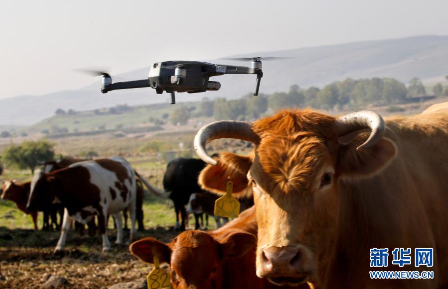 這是11月23日在戈蘭高地拍攝的正在牧牛的無人機。