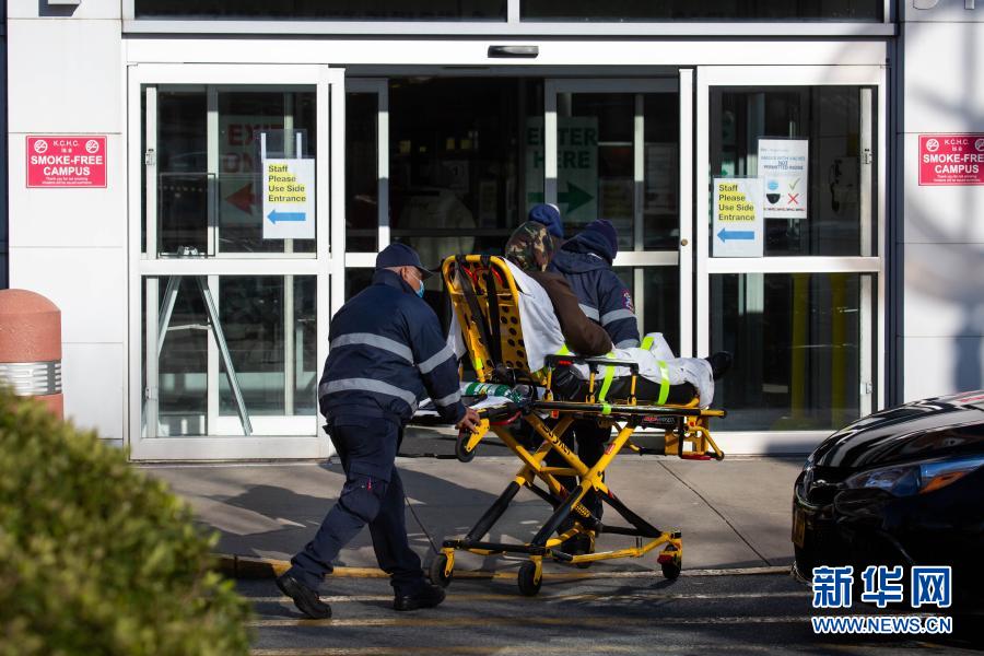 12月3日,在美國紐約,工作人員運送一名患者。新華社發(fā)(郭克 攝)