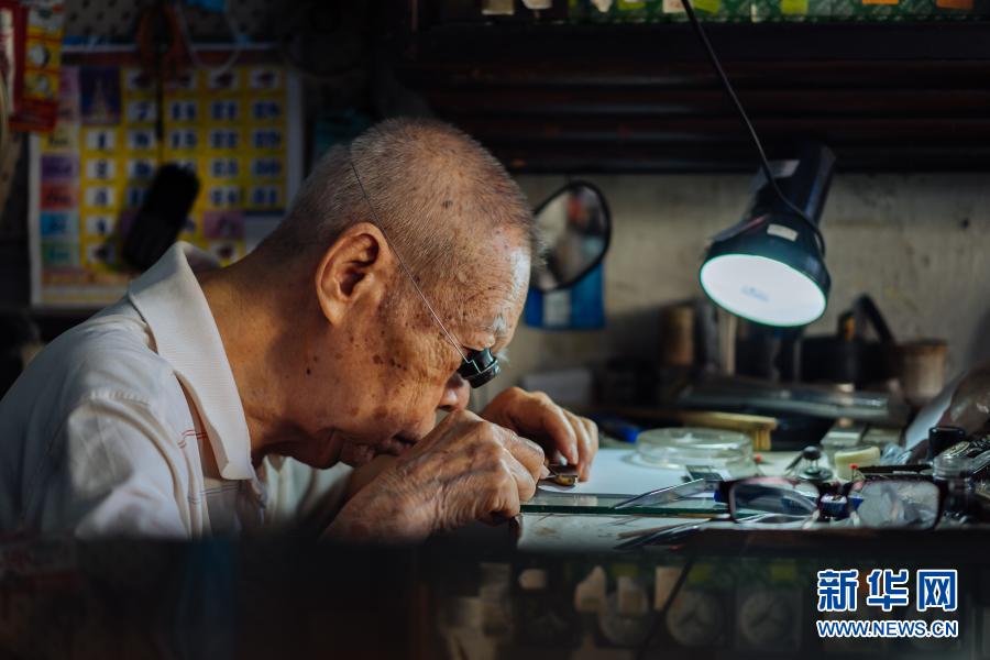 12月5日,在馬來西亞雪蘭莪州巴生的郁昌表行,韋華在維修手表。新華社記者 朱煒 攝