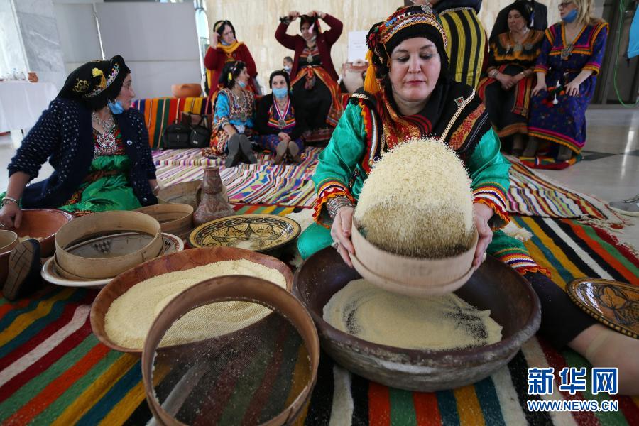 12月17日,在阿爾及利亞首都阿爾及爾,柏柏爾婦女在一個文化活動上制作“古斯古斯”。
