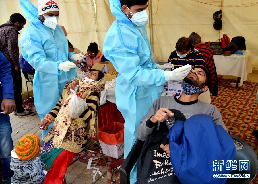 12月19日,乘客在印度德里一處巴士終點(diǎn)站接受新冠病毒檢測取樣。新華社發(fā)(帕塔·薩卡爾攝)