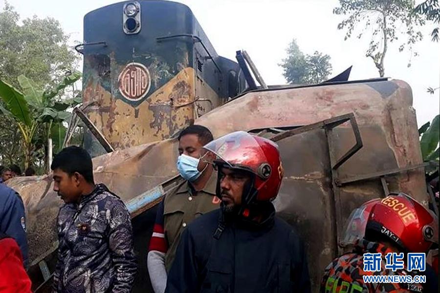 12月19日,孟加拉國西北部地區(qū)19日早上發(fā)生一起火車與客車相撞事故,事故導致12人死亡,另有數(shù)人受傷。新華社發(fā)(薩利姆攝)