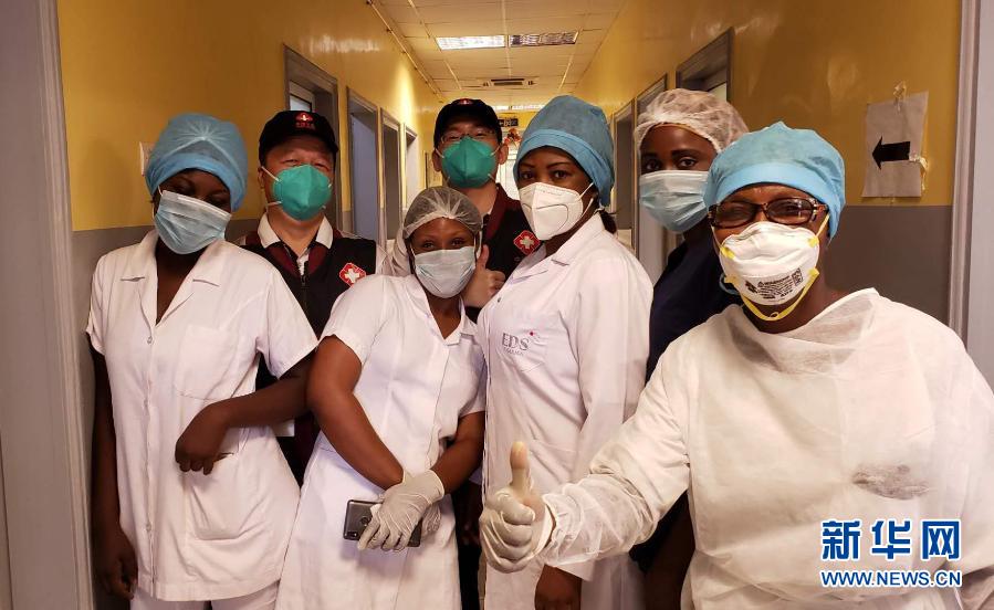 5月26日,中國抗疫醫(yī)療專家組在剛果(布)首都布拉柴維爾指導新冠肺炎病房建設(shè)時,與當?shù)匾痪€醫(yī)務人員合影。新華社發(fā)