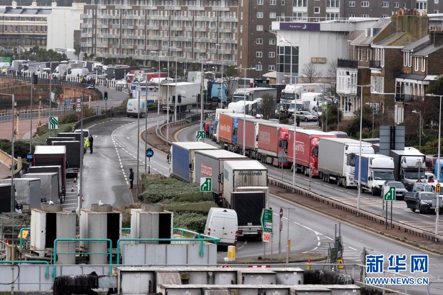 此前,為應對英國近期出現(xiàn)的變異新冠病毒,法國宣布從當?shù)貢r間20日午夜起48小時內(nèi)禁止來自英國的所有人員旅行,包括與公路、鐵路、航空、水路有關的貨運人員旅行。這給英國與歐盟國家之間的貨物運輸帶來極大影響。自邊境關閉以來,大約有2850輛卡車被困在英國肯特郡。