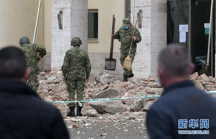 12月29日,士兵在克羅地亞首都薩格勒布清理震后廢墟。新華社發(fā)(Pixsell圖片社 西穆諾維奇攝)