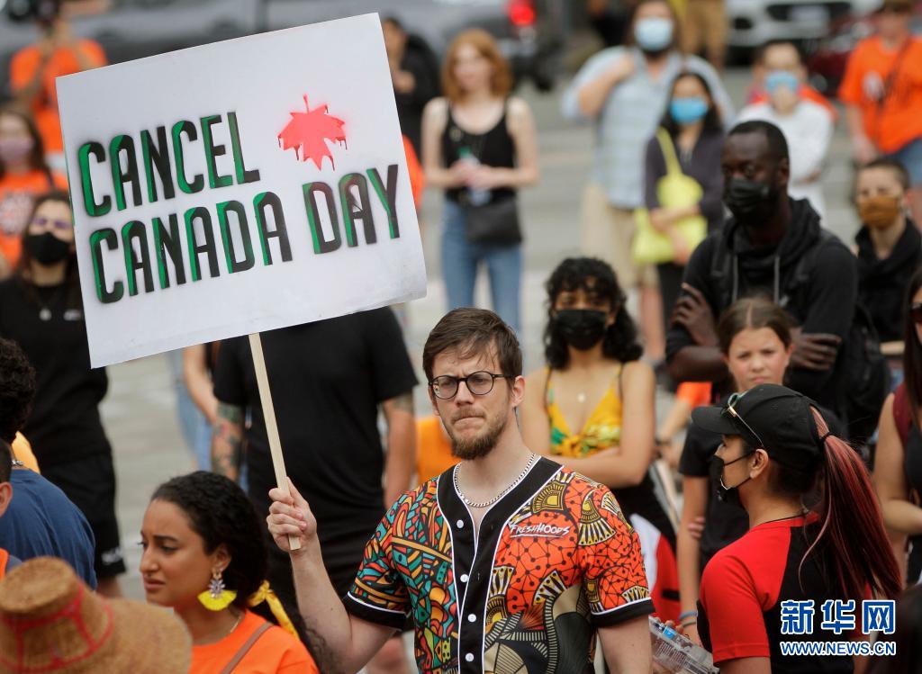 當(dāng)天是加拿大日,上千名抗議者在溫哥華集會(huì),悼念加拿大在強(qiáng)制“同化”原住民過程中遭到殘害的兒童,呼吁取消加拿大日的慶?;顒?dòng)。