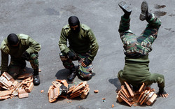 馬來(lái)西亞士兵表演“頭碎壘磚”(組圖)