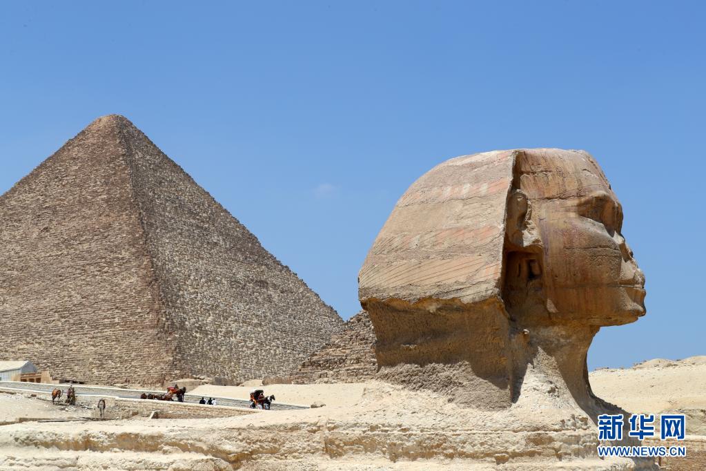 4月26日,游客在位于埃及吉薩省的金字塔群景區(qū)內(nèi)游玩。