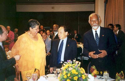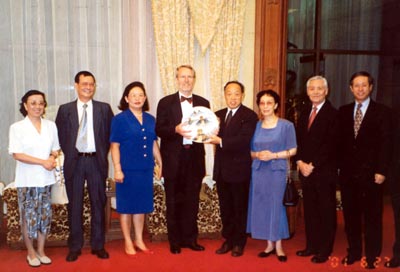 ????June 7. 1996 on a visit to the Republic of Kiribati, a country with a territory of 684 square kilometres and a population of 80,000 and also known as the Cross of the World because it happens to be the only country where both the equator and the international date line run through.